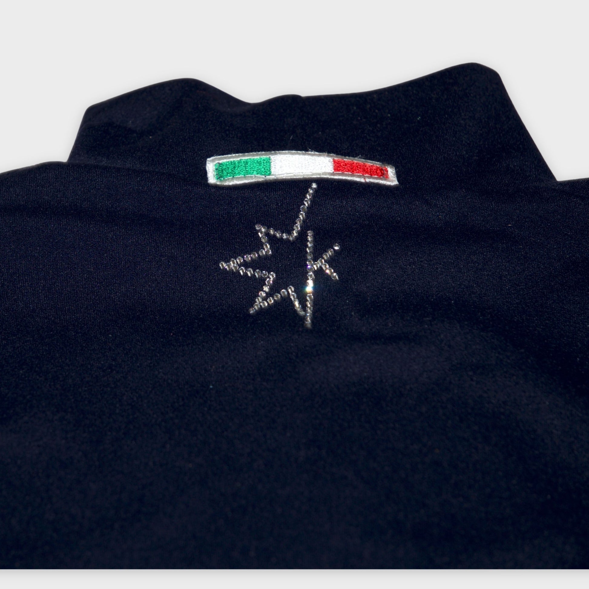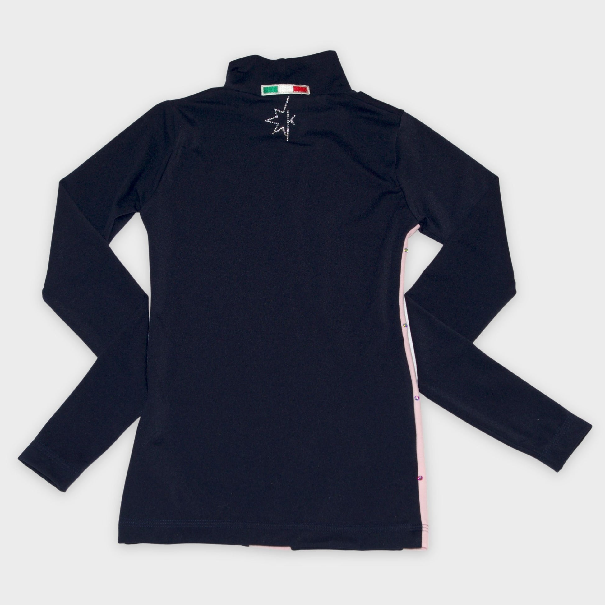 Turtleneck shirt with a bold K-shaped contrast panel (optional accent overlay) scattered with Swarovski® crystals.
